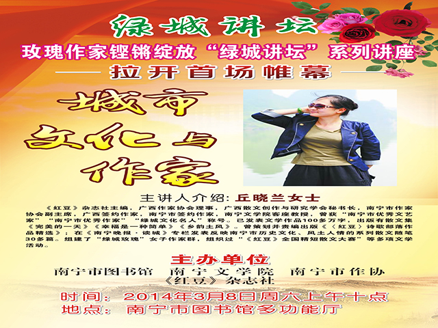 玫瑰作家铿锵绽放“绿城讲坛”系列讲座预告