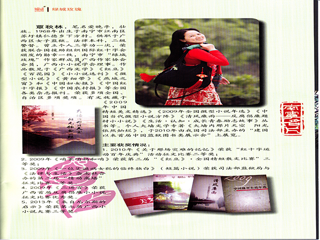 主讲:覃秋林,笔名爱晚亭,二级警督,“绿城玫瑰”作家群成员,广西作家协会会员,广西小小说学会理事,广西红十字会15年老义工。