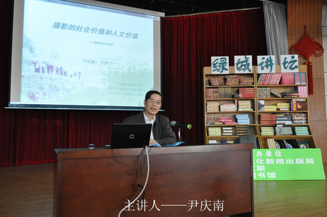 该讲座邀请尹庆南主讲,尹庆南系广西摄影家协会理事,南宁市摄影家协会副主席,南宁市职工摄影协会主席,在省、市级报刊发表作品300多幅,并曾在《美丽神奇的广西》等摄影大赛中获奖。