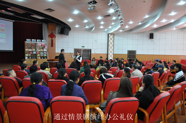 在讲座中,丁一结合图片、数据以及音乐等素材,不仅以讲为主,还特地策划了几场生动的情景短剧,使近百位聆听者耳目一新,尤其有针对性地讲解了办公场所和公共场所需要注重的诸多礼仪与形象知识。 她首先就大家在日常生活和公务活动中最易忽视的礼仪进行了剖析,如接打电话的习惯,特定场合的着装礼貌等,逐个讲解正确的处理方式,并亲自示范,以互动的形式加深了大家的印象。短短两个多小时的讲座里,现场笑声不断,掌声不断,气氛轻松而热烈。