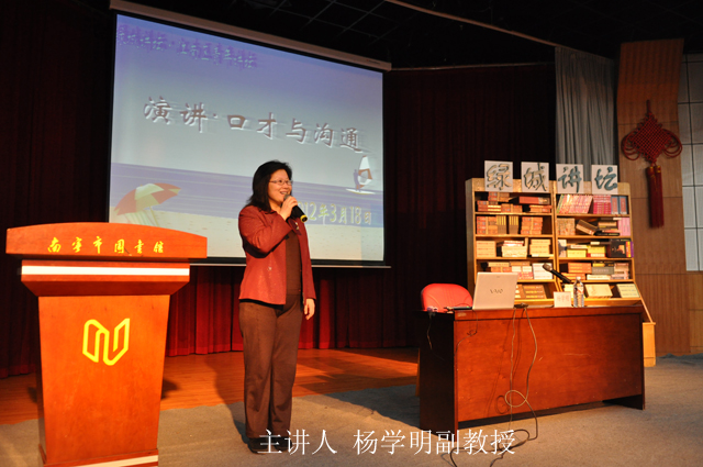 该讲座邀请广西民族大学艺术学院硕士研究生导师杨学明副教授主讲。杨副教授系中国演讲与口才学会常务理事、著名主任播音员、中国电视艺术家协会主持人专业委员会委员、广西大学和广西民族大学国家级精品课程课题组成员、广西艺术学院特聘教授,现任广播电视编导专业教师。她曾多次受邀担任全国演讲大赛评委,同时在广西区内各重要演讲大赛中担任主要评委,深受广大选手和演讲爱好者好评。