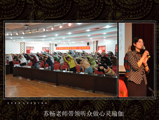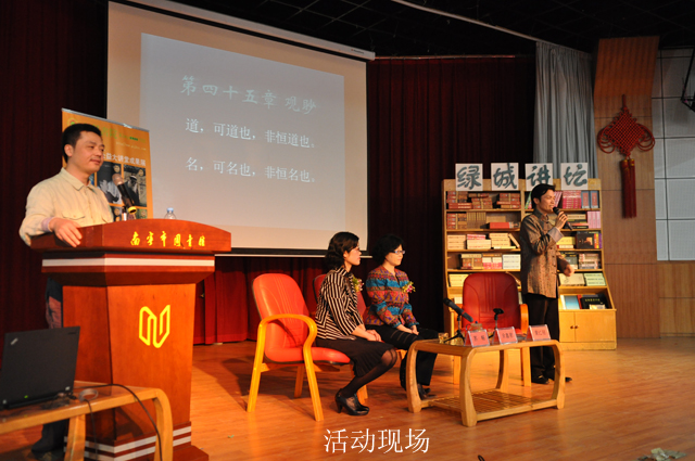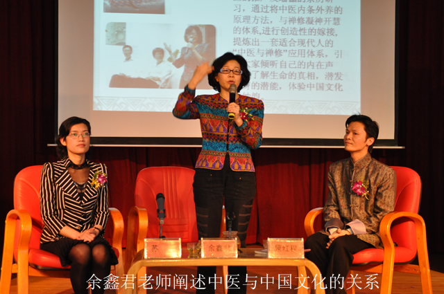 在讲座中,台湾医学专家余鑫君、心理学导师苏畅和国学导师蒙红程应邀作为主讲嘉宾,与广大读者一起探讨了人类生命的状态和价值。师承世界知名中医大师倪海厦的台湾学者余鑫君,精通中医等传统治疗术,近些年来致力于中医推广和瑜伽研习,并通过中国内修外养的原理,借助中医体系探索出一套适合现代人的“中医与禅修”应用体系,她在讲座中通过示范放松操来引导大家倾听自己的内在声音,了解生命的真相,发掘自身的潜能,体验中国文化的妙韵。作为国家认证心理咨询师的苏畅以自己十余年的心理咨询实践,从人性深层特质的角度,透析现代人精神焦虑、心理亚健康、人际关系病态的根本原因,并通过画面描述与大家互动进行共修研讨,为现代人走出心理误区,获得身心自由,提供了有益的借鉴之方。蒙红程从事少儿国学教育多年,他倡导“知行合一、生活教育、转知成智、自我醒觉”的教育观念,总结出一套国学观诵方法,注重诵读中身心与经典合为一体,他现场表演的观诵和太极引起了观众的共鸣与掌声。三位老师全面生动的理念传播使现场听者豁然开朗、感悟颇深。