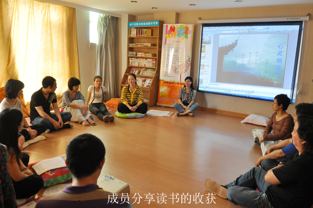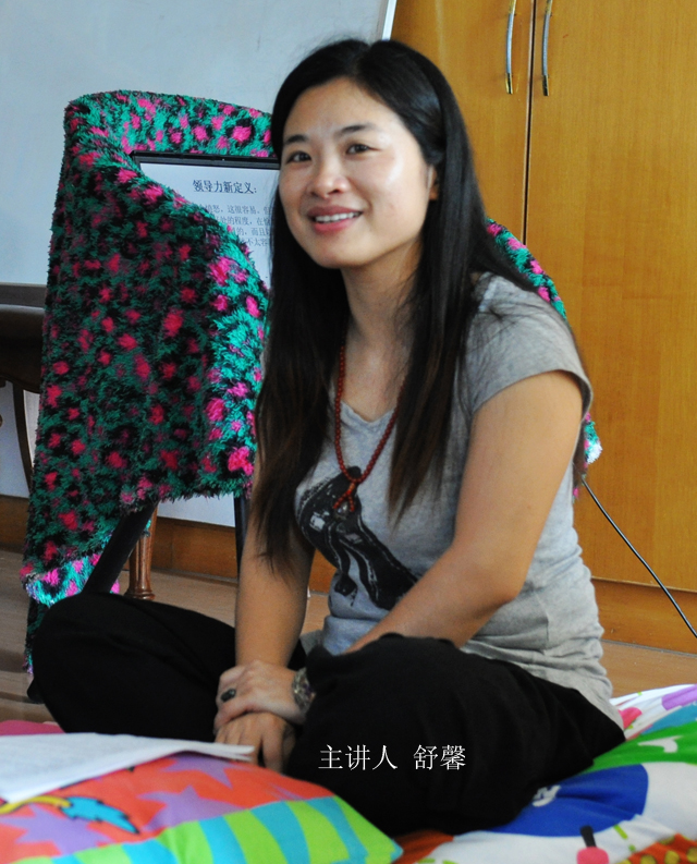 舒馨在活动开始前引领大家进行了热身、放松和呼吸练习,使成员们放松身心,进入阅读与聆听的最佳状态。她首先为大家介绍了今天要读的书——《懂得爱》。每位成员都席地而坐,阅读了书中的相关篇章,其中一位成员还为大家朗读了一个片段。舒馨引用了美国著名情商领导力专家丹尼尔•古勒曼关于“领导力”的观点,并运用实例阐述了心灵领导力的新定义。领导力就是个人对自己情感和人际关系拥有驾驭能力,学会了如何以健康的方式在第一时间来表达和分享各种情绪,并将其能量转化为生产力。学习心灵领导力对于每一个人而言都具有非常重要的意义,在学习过程中会更清楚地认识自己,发掘自身的生命潜能,持续成长,与人建立起更和谐的良性关系,获得内在更强大的力量。随后,舒馨运用加拿大海文学院的沟通模式理论、镜像理论,并结合自己和身边的例子与大家分享了人与人之间的关系培养、维系以及自我价值的认定等内容,引发了成员们积极地互动讨论。