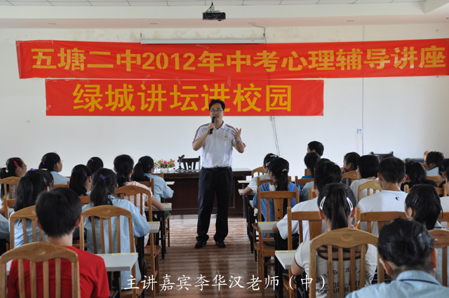 为引导同学们掌握良好的心态,以最佳状态备战中考,5月30日下午,南宁市文化新闻出版局、南宁市图书馆和兴宁区图书馆携手“绿城讲坛”公益讲座走进五塘二中,为这里的200余名初三学生举办“中考心理辅导”专题讲座。