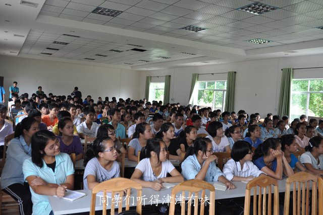 此次讲座邀请到现任南宁市文化新闻出版局副局长、南宁市政协常委、民进南宁市委会副主委李华汉老师主讲。李华汉老师曾任邕宁高中副校长、邕宁县分管教育的副县长和南宁三中副校长。在讲座中,李老师凭借自己多年研究中学生教学及心理教育的工作经验,针对中学生在学习中常见的问题,深入浅出地阐述了如何培养信心、如何科学制定复习计划、提高复习效率、调整生物钟、考场情绪应对、答题技巧等内容;其中,李老师提出的“三天独来独往”、“忘前想后”等自我调适方式给同学们留下深刻印象。最后,李老师还现场示范了可帮助提神醒脑、聪耳助听的千年古法“鸣天鼓”,引得大家欢欣踊跃地效仿体验。整场讲座,李老师以生动、幽默的讲课风格赢得了师生们的阵阵掌声。
