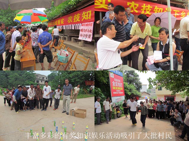 讲座结束后,村民们排队登记领取了图书馆免费赠送的《农家致富顾问》、《读者》等科技文化期刊,同时,还踊跃地参与了南宁市图书馆带来的“我们的节日”——端午节文化有奖知识竞答以及青秀区图书馆组织的抛圈、运乒乓球等趣味竞技活动。丰富而精彩的系列活动,不仅让村民收获了节日的喜悦,获得了丰盛的奖品,还学到了实用的科技知识,对今后的生产种植起到了极大的促进作用。