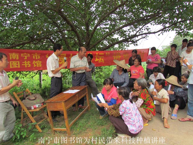 6月21日,南宁市图书馆与青秀区图书馆携手将“绿城讲坛”送到青秀区南阳镇雄会村,为当地村民送上了一系列科技种养知识及端午节文化知识有奖竞答、体育竞技等活动。