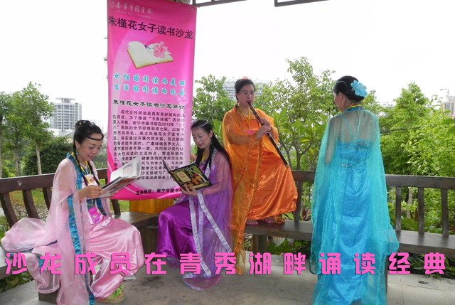 为弘扬端午文化,传承中华文明,进一步引导广大市民了解传统节日,认同传统节日,喜爱传统节日以及过好传统节日,6月24日,时值端午节小长假的第三天,南宁市图书馆朱槿花女子读书沙龙的成员们一大早就齐聚青秀湖畔,展开了一场“着汉服•诵经典”读书活动,这正是“我们的节日•端午节”主题活动之一。