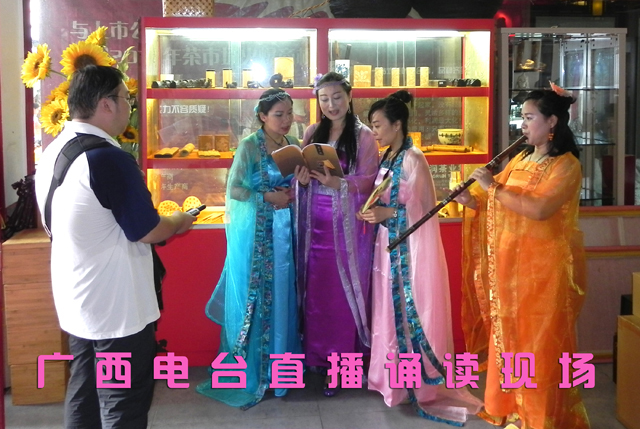 端午节的来源主要是纪念屈原,也称“诗人节”。为了展示华夏源远流长的经典诗文,南宁市图书馆朱槿花女子读书沙龙的成员们怀着对汉服和古典礼仪共同的热爱,在赛龙舟、吃粽子的热闹氛围中,精心策划开展了“着汉服•诵经典”读书活动。是日,大家先在青秀山如意坊做足准备——盘发、穿汉服、画古妆、交流传统礼节、学习古人整理衣冠,尔后,大家径直奔赴青秀湖畔,在一处凉亭落脚后,双手捧着由南宁市图书馆借阅来的经典读物,在大自然的洗礼中开始诵读活动,当天的阵雨更使这一活动写意不少。大家穿着汉服首先在现场朗诵《九歌》、《离骚》、《楚辞》等中华经典作品,同时,还接受了广西电台记者的采访,在中午12时以现场直播的形式,通过电波和广大市民一同分享了诵读经典的特殊意义。在诵读过程中,大家有的独诵,有的三三两两进行群诵,在成员梁知那悠扬婉转的箫声伴奏中,大家抑扬顿挫地诵读赢得了过往游人的交口称赞,“五月五,过端午,赛龙舟,敲锣鼓,端午习俗传千古”——成员们还诵读了朗朗上口的儿歌,向绿城市民传递节日的快乐,整场诵读活动显得格外鲜活灵动。