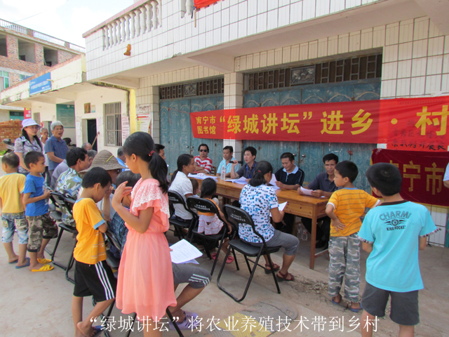 7月4日,南宁市图书馆再次携手青秀区图书馆邀请市动物防控中心的畜牧专家黄有斌将“绿城讲坛”带到青秀区刘圩镇那床村,为当地村民解决养殖技术难题。
