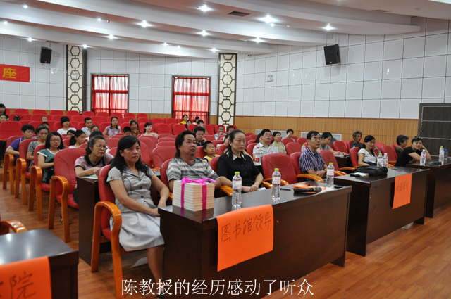 主讲陈家骥教授历任广西电力工业局高级工程师、广西电力学院动力系系主任、南宁海天能源科技公司董事长兼总经理,现任南宁市怀念清华文化传播公司董事长和怀念清华演讲团团长,著有《热能动力专业知识》和《我心怀念清华》两书。陈教授在讲座中以自己的母亲阳成慧为主线,讲述了一位平凡的母亲坚忍不拔、以身作则,把3个儿子培养考上清华大学的真实事迹,她的教育方法与当代教育学家提倡的早教理念不谋而合;陈教授还与大家无私地分享了4个行之有效的学习方法——养成良好的行为习惯,身教比言传更重要,要比就比孝道、比品质、比学识和营造良好的家庭氛围,他强调,掌握科学的学习方法有助于提高学习自觉性、学习效率以及学习成绩,帮助自己健康成长、成人、成才,他鼓励孩子们努力学习,也祝愿孩子们的学业蒸蒸日上。