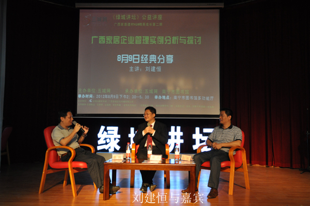 8月9日下午,南宁市图书馆与五城网共同举办了主题为“广西家居企业管理实例分析与探讨”的公益讲座,近三百名广西家居建材行业精英齐聚一堂,共同分享了由国内资深营销策划专家、有“广西家居建材行业培训第一人”之称的刘建恒老师在企业经营管理上的秘诀。