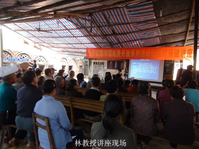 2012年11月2日上午,兴宁区图书馆、南宁市图书馆共同邀请广西中医院专家林才志教授到兴宁区四塘煤矿社区举行了“中老年健康养生”讲座。