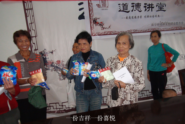 11月8日,南宁市文化新闻出版局与南宁市图书馆携手兴宁区图书馆走进澳华社区,为居民们开展了一堂生动的“道德讲堂”活动。该活动旨在党的十八大召开之际,进一步弘扬“能帮就帮•敢做善成”的南宁精神,促进全民思想道德教育与和谐社会建设,助推绿城文化事业的长足发展。