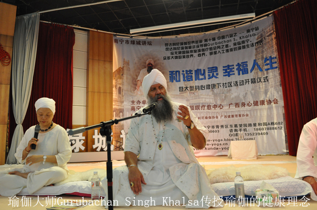 该讲座特邀昆达利尼瑜伽国际资深导师Gurubachan Singh Khalsa主讲,他追随Yogi Bhajan大师36年,曾在60多个国家旅行并教导人们如何通过浅显易懂易学的方法来学习调控心智。 Gurubachan Singh导师同时也是一名成功的商人,他是美国最大珠宝批发贸易Khalsa公司的主席,他把瑜伽心智修行和国际商务操作的不同文化理念完美地结合在一起。他曾接待过美国副总统戈尔、德国总理科尔、摇滚巨星迈克尔.杰克逊、警察乐队主唱斯汀和NBA巨星皮蓬等诸多欧美大牌政要、明星。作为昆达利尼瑜伽最资深的导师,Gurubachan Singh继承Yogi Bhajan大师的遗志,坚持昆达利尼瑜伽每年一度的世界巡游,该场讲座便是受无限飞扬颜瞑瑜伽疗愈中心丁逸老师与南宁市图书馆盛情之邀,于30日在绿城南宁与广大市民分享了昆达利尼瑜伽科学为人们所带来的实用益处,更为大家带来心智及身体的健康。