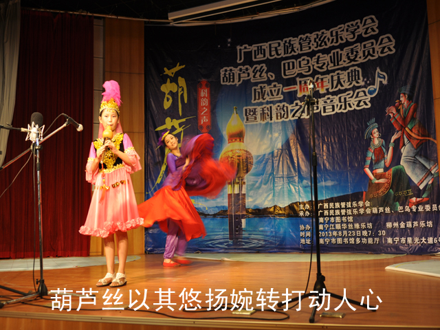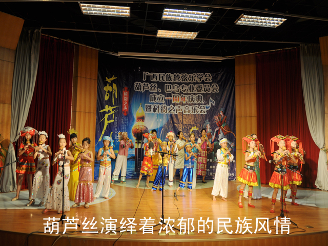 音乐会上,来自南宁、柳州等区内各地以及云南的葫芦丝演奏者纷纷展示了精湛的葫芦丝演奏技艺,其中不少学习葫芦丝的小演员们还是“绿城舞台”的“常客”。葫芦丝发源于云南傣族,是具有浓郁民族风情的乐器。该音乐会将葫芦丝与巴乌、笛子、埙、箫的特色融合,编排出了一曲曲婉转动人的节目;婀娜的民族舞蹈配合着葫芦丝的演奏更焕发出了极具魅力的南国情韵,给人以听觉、视觉双重美的享受。