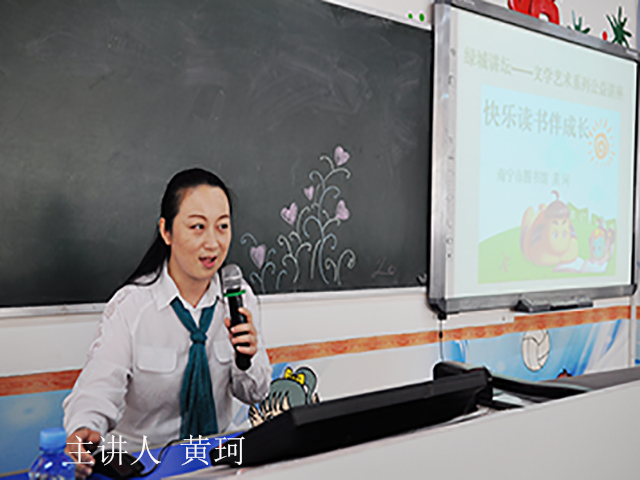 2013年10月23日,南宁市图书馆读者活动部副主任黄珂应贵港市图书馆的盛情邀请,赴贵港市荷城小学为四百多名师生作了一场“快乐读书伴成长”专题讲座,引起师生们的热烈反响。