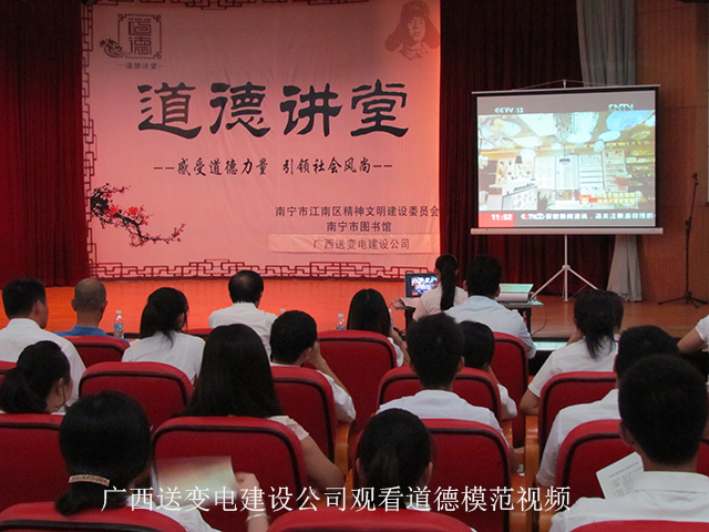 各承办单位都遵循了“道德讲堂”的流程,但其内容也各具特色。广西送变电建设公司的工会主席赵金林既是主持人又是道德宣讲人,他以一篇主题为《诚信》的讲稿贯穿始终,在其中穿插了社会陷入信任危机的图片、第四届全国道德模范诚实守信杰出代表范海涛信守承诺、竭力为村民办好实事的视频短片,引领大家诵读《论语》中“君子义以为质,礼以行之,孙以出之,信以诚之,君子哉!”等关于信与义的经典选段,一同唱响《诚信中国》歌曲中“以诚相待、诚信为本、诚信的中国心想事成前程似锦”的主旋律。南宁市航道管理局通过播放社会上不文明现象的图片、诵读《千字文》和老子《道德经》中“坚持雅操,好爵自縻”“圣人之道,为而不争”等片段,启发听众自我反省,从而明辨善恶美丑、培养高尚的道德品质,提倡行善、坚持正气。该局行政执法大队现场负责人李振恒讲述了自己在管理执法时经历的真实事例,正因为他做人讲原则、做事讲方法、不向不法分子妥协,才能在职业生涯中完成一个又一个艰巨的任务,维护好航道的和谐有序。