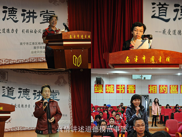 2013年11月份,南宁市图书馆与江南区精神文明建设委员会共同举办了四场“道德讲堂”,由福建园街道党工委、江南街道党工委、沙井街道党工委和福建园街道大党工委分别承办。