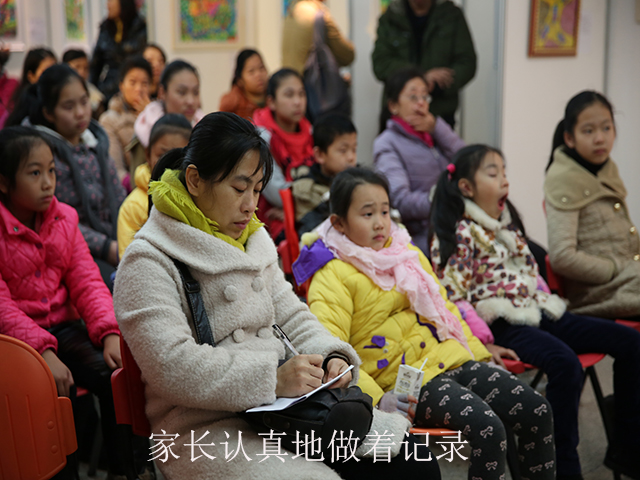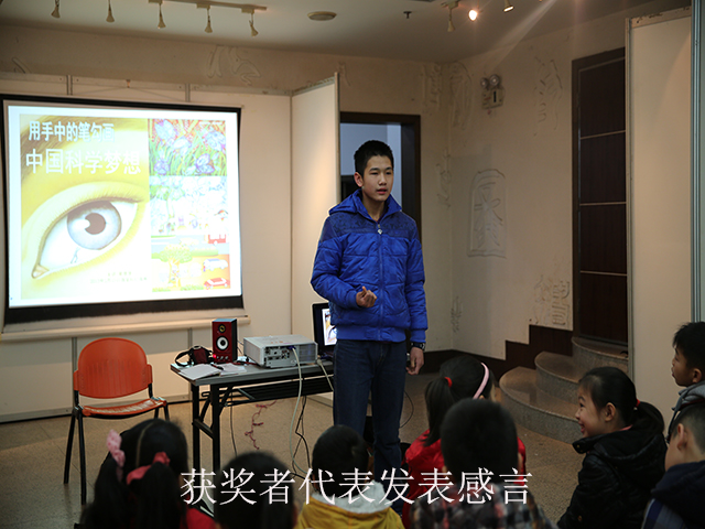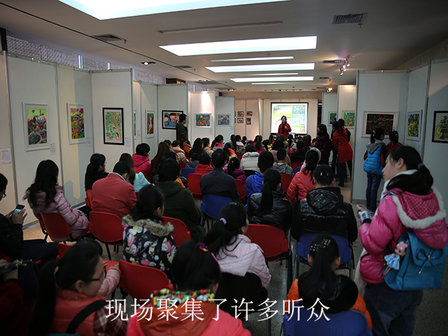 当天,许多对科幻画感兴趣的学生及家长前来参观了画展并聆听了讲座。历届担任南宁市青少年科技创新大赛科幻画评委的南宁市图书馆读者活动部主任全维明老师给观众总结了参赛的一些技巧,他认为科幻画区别于科技发明、科技制作的最大特点就在于它需要一定的绘画水平,而这是他作为评委评判一幅科幻画优劣的首要标准,其次才是科技含量。简言之,能够用独树一帜的画风、高水准的绘画技巧将清晰突出的主题和标新立异的科技创意表达出来,才是一幅好的科幻画作品。他也分析了这些年来的获奖作品,虽然也有几幅作品让人眼前一亮,但是大多数作品的风格太单一,画作水平不高,令人惋惜。因此,他呼吁指导老师和家长在指导学生创作时,应更注重鼓励他们发散思维、大胆创意、求新求变,例如尝试别人没有用过的画风,或者将几种绘画手法结合在一起等等,总之要打破常规,跳出条条框框,才能突破瓶颈,获得更大的进步空间。全维明老师的思路给了观众很多启发,许多家长认真地做了笔记。随后,获奖作品的作者代表与大家分享了他们的创作心得,鼓舞了现场的小观众。