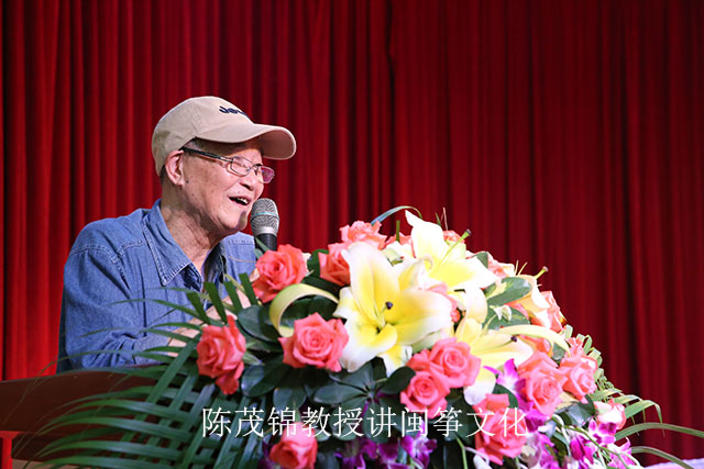 做客“绿城讲坛”的80岁高龄的陈茂锦教授,系著名古筝教育家、教授、艺术硕士研究生导师,中国民族乐器学会闽筝传承研究会会长,中国福建筝派领头人,福州闽筝传承班研究会会长,福建筝派传承班导师。早年师从福建筝派艺人陈友章、张永固先生。历时十年得到了两位大师的精传,授曲丰多,筝艺精湛。演奏风格古朴,淡雅而细腻,独具特色,是典型的南派筝家。撰有《闽南筝曲集》和福建筝派研究的多篇论文刊出,是我国一位很有影响的老筝家。