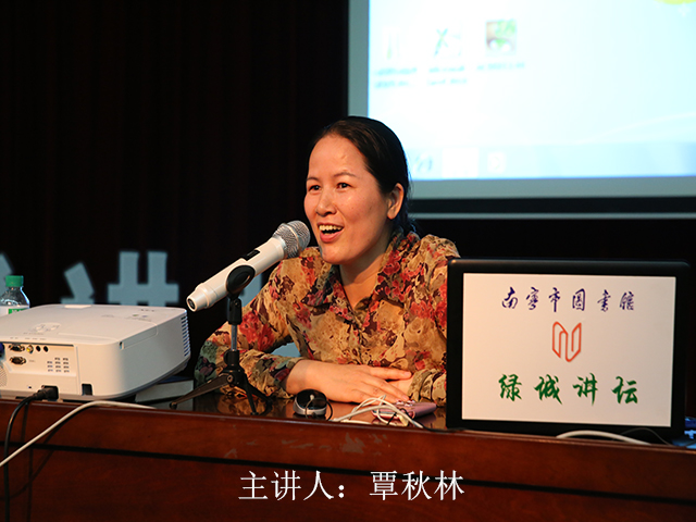 主讲覃秋林,笔名爱晚亭,系二级警督,“绿城玫瑰”作家群成员,广西作家协会会员,广西小小说学会理事,她还是广西红十字会15年的老义工。目前,覃秋林出版有个人大墙文学专著《大墙内那片天空 阳光依然灿烂》;她的作品《二进宫》《咱爹咱妈和咱》《来自尼尔斯的启示》等散见于《广西文学》《红豆》《百花园》《小小说选刊》《微型小说》《黄丝带》《燕城之窗》和《中国妇女报》《中国红十字报》《中国农村报》。该讲座由三个关键词——故乡、守护神、精神领跑者展开,覃秋林从“绿城,我的故乡”、“警察,是一座城市的守护神”、“作家,是一座城市的精神领跑者”这三个方面和大家畅谈了作为一名民警是怎样走进文学殿堂的心路历程。她列举了自己专访的兴宁区公安分局社区民警罗萍、南宁市公安局进出口三大队副大队长潘少锋、四度进驻任务国执行维和任务的联合国维和警察文龙警官以及南宁市消防支队的消防战士黄胜新警官等采访事例,为现场聆听者传达了正能量,她还分享了自己走进南宁市公安历史博物馆那种深怀崇敬的心情。在写作方面,她归纳为两点——第一是从事宣传工作的警察要深深地扎根在警营这片特殊领地里,干一行爱一行;第二是呼吁社会上的作家们要善于走进警营,关注警营,解读挖掘警察文化题材,用自己的笔触帮助警察与广大市民搭起互相理解、互相帮助的桥梁,写出真实反映、由衷赞美警察工作的危险和艰辛。