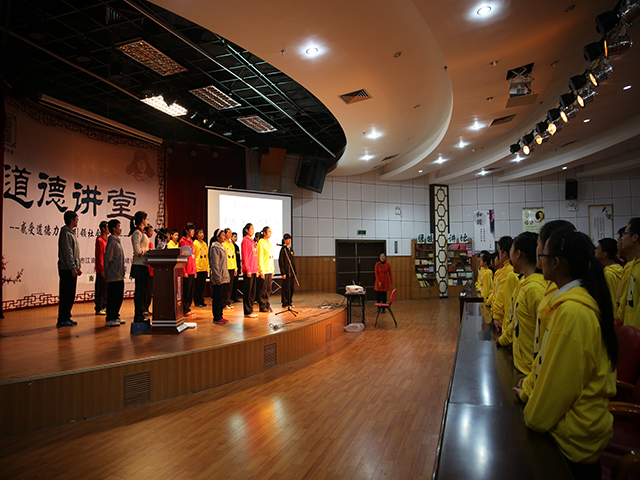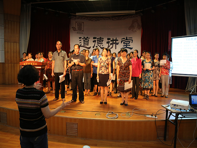 “道德讲堂”系列活动主要围绕“诚实守信、敬业奉献、助人为乐、见义勇为、孝老爱亲”等主题开展,尤其突出诚信内容,做到了名称、背景、内容、标准、模式五个“统一”,整体布置风格一致,使用全市统一的背景模板和LOGO标识,主办单位同样落款清晰,参加活动的人员都肃整衣冠,会场桌椅也摆放有序,讲堂式的活动形式深受大家欢迎,无论从现场气氛还是从背景音乐,活动现场都极具庄重、肃穆、浓厚的国学氛围。大家纷纷表示:参加这样的活动,尤其是聆听了道德模范的故事很受鼓舞,在职也好、退休也好,都要牢固树立正确的道德观,使自己的人生更加精彩!