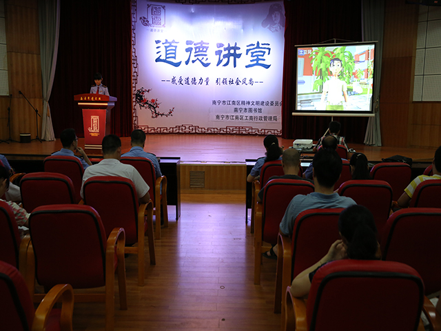 为真正把“道德讲堂”建设成为市民道德教育的主阵地,扎实推进“道德讲堂”的建设工作,南宁市图书馆牵手南宁市江南区精神文明建设委员会在该馆多功能厅设立“道德讲堂”总堂,定期开展道德教育主题活动,半年共举办活动11场次,参加人数多达2069人次,引起了较大的社会反响。