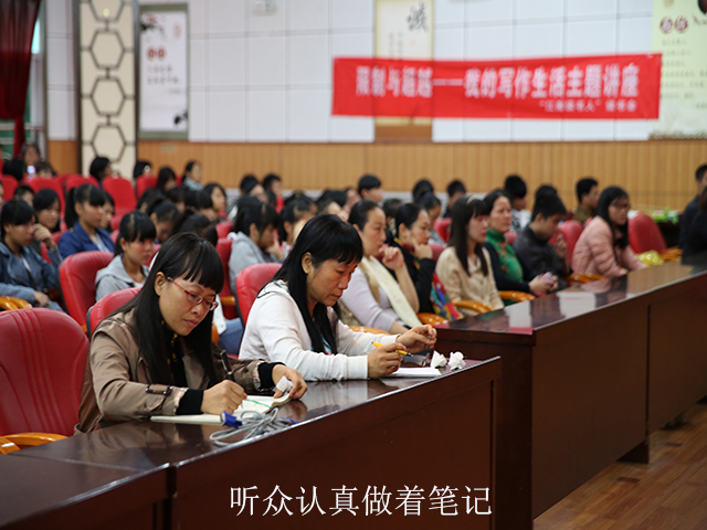 讲座首先以一段中央广播电台《残疾人之友》栏目主持人朗诵的散文《带着微笑背负起自己的十字架——三读<假如给我三天光明>》,将现场聆听者带入廖燕的文学世界。在讲座中,廖燕把“出于对文学的热爱”、“为了责任”和“不甘心于命运的安排”这三点称作是自己写作的理由,并和大家分享了自己是怎样阅读和写作的。她说:写作是一件与心灵、精神高度契合的事情,如果没有心中的热爱,恐怕很难坚持写作并且创作出打动自己同时也打动别人的作品。她强调:兴趣爱好是最好的内在驱动力!当说到写作还是一种责任时,她解释道:与其给我的孩子讲述一百个别人的励志故事,不如就让自己做一个现实版的励志故事主人公,陪伴她一起成长。从学习盲文到使用读屏电脑,廖燕不畏困难,挑战命运,超越自我的勇气和努力,不懈地追求心中的光明,而这所有的一切都离不开个人的意志与努力。最后,她吹奏了一曲优美动听的葫芦丝独奏曲为讲座画上了一个圆满的感叹号。讲座结束后,不少聆听者都不愿离场,纷纷与廖燕互动交流,他们之中有投身公益事业的热心人士、有一直关注弱势群体生活的媒体人士,也有同样爱好文学写作的社会人士……其中不乏廖燕曾经教导引领过的学生们。大家一致感受到:廖燕,一个坚强的名字,真心希望她生活幸福,并能读到更多廖燕的作品。南宁文学院丘晓兰院长在现场看到此情此景非常感慨,她说:有这么多既充满爱心,又热爱文学的社会各界人士,我们绿城的文学事业真是前景可观啊!