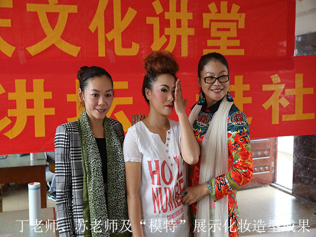讲座吸引了众多业余文艺队员、文艺爱好者前来聆听。丁逸老师首先有针对性地讲解了舞台礼仪、标准舞台站姿和上下台的规范动作等基本知识,并亲自示范、手把手地教学。苏宁老师则现场找了一位听众充当模特,一边为她上妆一边讲解化舞台妆的技巧和步骤,并示范了如何打造舞台发型。梳妆完毕的“模特”一亮相,引得听众一片赞叹,不仅形象焕然一新,气质和精神也有了很大提升,这正是丁逸和苏宁两位老师要传达给听众的主旨:一个人的仪表举止就像是一扇窗口,反映了人内在的气质和精神面貌。所以不管是舞台上还是生活中,都要维持大方优雅的言行举止和形象,既是对他人的尊重,也是提升自信、增进人际关系的良好方式。