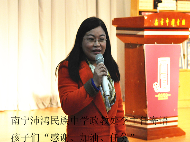 南宁市图书馆蒋桂香副馆长非常关注未成年人的健康成长,她也到场聆听了讲座,并表示:作为没有围墙的知识殿堂,图书馆有责任有义务为未成年人提供最贴心、最实用的文化服务。来自南宁沛鸿民族中学的语文老师谢巧靖在讲座一开始就按耐不住自己激动的心情,她告诉孩子们,自己在十几年前就已经有幸听过胡颖的讲课,孩子们能参加这种质量的活动真是非常幸运与幸福,所以一定要珍惜所有这样的文化公益活动,经常到馆参加来拓宽自己的学识;该校政教处的李主任也在活动即将结束之际寄语孩子们:朗诵,就是用声音给作品化妆,是学习的最高境界,只有坚持才能达到一定的水平,她叮嘱孩子们记住三个词——感谢、加油、任务,期冀大家在新的一年再接再厉,取的好成绩。