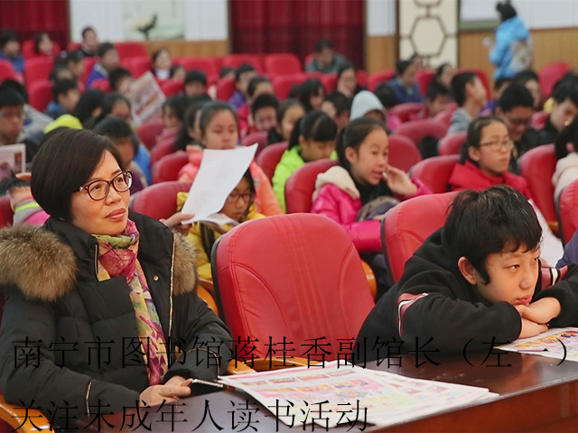 2月3日下午,南宁市文化新闻出版广电局、南宁市图书馆、南宁沛鸿民族中学和南宁市小龙人故事大王文化中心在市图多功能厅共同举办了一场主题为“阅读兴趣与朗读技巧”的文化专题公益讲座,近三百位老师、家长和中学生不畏寒冬冷雨到场聆听。