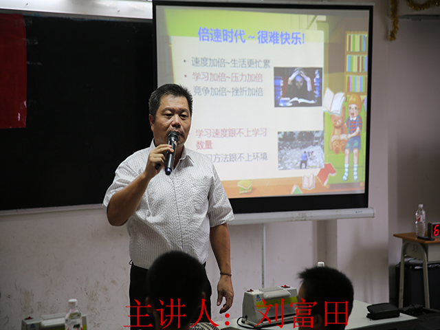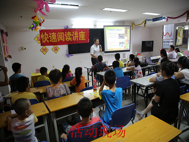 在当天的活动当中,刘富田先生首先为大家分析了现在学生们阅读效率不高的原因。他指出,人类90%的知识来自视力,80%来自阅读,但是很多人都有:音读、点读、回读、注意力不集中、缺乏时限、缺乏阅读思维程序等障碍,使得很多人产生了不喜欢阅读的现象。这样的阅读既浪费时间又降低了效率。针对这样的问题,刘富田先生为大家指出了几个方法:首先应该在注意力高度集中状态下阅读,以获取有价值信息为目的的一种积极的、创造性的理解记忆过程;其次要锻炼自己的“快速理解+快速记忆”能力,也就是说快速阅读者,能够用和快速阅读同样的速度来同步理解所阅读的内容,并且同时比较牢固地记忆住所看到的内容;最后,要在限定的时间内做一定量的练习,使方法变为习惯,才能事半功倍。在当天讲座的现场,刘老师还与同学们进行实验练习,把最真实的经验和方法与现场的学生、家长进行分享。