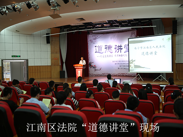 爱岗敬业,恪守职业道德对于法院干警来说就要做到公正、廉洁、为民,具体的要求就是要忠诚司法事业、保证司法公正、确保司法廉洁、坚持司法为民、维护司法形象。江南区法院举办本次道德讲堂活动,首先从社会反映的不良工作作风问题,引导听众们进行反思。其次,播放该院宣传片,宣传片反映出了该院干警日常工作的点滴。有在审判席上开庭审理时庄重威严的审判员,有在执行现场执行时法纪严明的执行员,有在街道社区进行调解时爱民如水的干警。该宣传片配合《好人就在身边》的歌曲播放时,给听众们对该院工作有了直观的了解。再次,“道德讲堂”活动中,该院组织了向模范学习的环节,通过播放“全国模范法官”金桂兰的新闻视频,并由一名法官向听众们讲述了金桂兰法官的先进事迹,展现了模范法官浩然的正气、昂扬的锐气和蓬勃的朝气。最后,活动在诵读敬业经典并送吉祥物后,圆满结束。