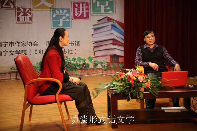 3月19日上午,南宁市市民迎来了“绿城公益文学讲堂”与“绿城讲坛”牵手合作第二讲。此次讲座邀请到了中国作家协会会员、广西作家协会副主席、南宁市政协文史学习委员会副主任常海军带来“文学创作ABC”主题讲座。令当天参加讲座的南宁市民惊喜的是,“绿城讲坛” 大胆尝试,首次采用访谈的形式进行。更近距离的聆听,更多样化的交流,更亲切的引导使得讲座展现出不一样的活力,受到大家的欢迎。