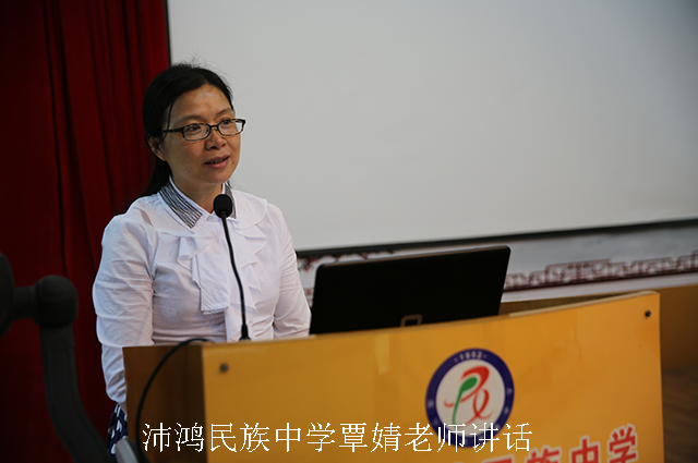 南宁沛鸿民族中学 “初中语文课外经典阅读与记诵的研究与实践”课题组组长谢巧靖主持了当天的活动,南宁市图书馆副馆长蒋桂香聆听了讲座,南宁沛鸿民族中学政教处副主任覃婧也为讲座做了精彩讲话,她提出两个希望,殷切地祝福孩子们在古典文学的长河中沐浴古典书香,充分领略经典文学带来的无限正能量。