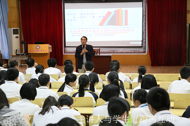 该活动以第21个“世界读书日”为契机,由南宁市文化新闻出版广电局、南宁市图书馆、南宁沛鸿民族中学及其“初中语文课外经典阅读与记诵的研究与实践”课题组联合举办,旨在引导青少年关注古典小说中有积极意义的内容,激发阅读古典小说的浓厚兴趣,通过名作家的诠释和解读,消除学生对古典小说的误解和阅读乏味感。