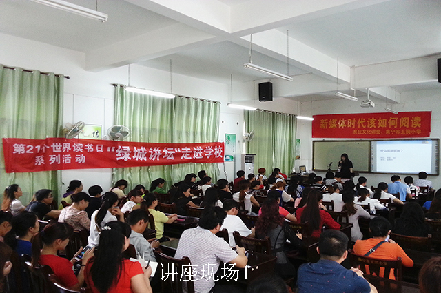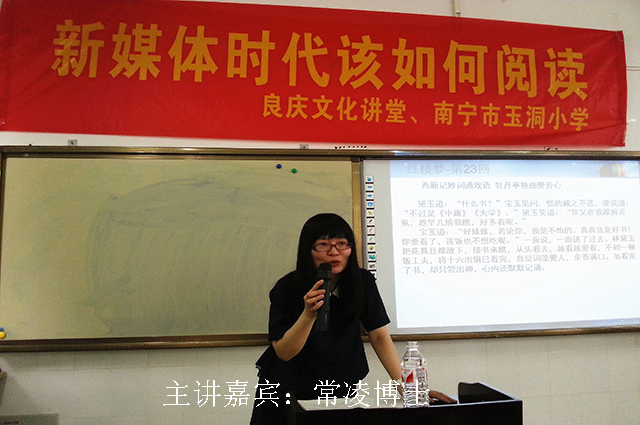 4月29日,在“全民阅读”持续升温的背景下,南宁市图书馆“绿城讲坛”再度奏响阅读篇章。当天下午,由南宁市图书馆与良庆区图书馆联合举办的“新媒体时代该如何阅读”知识讲座在良庆区玉洞小学多媒体教室热烈举行。100多位教师和家长到场聆听了讲座。