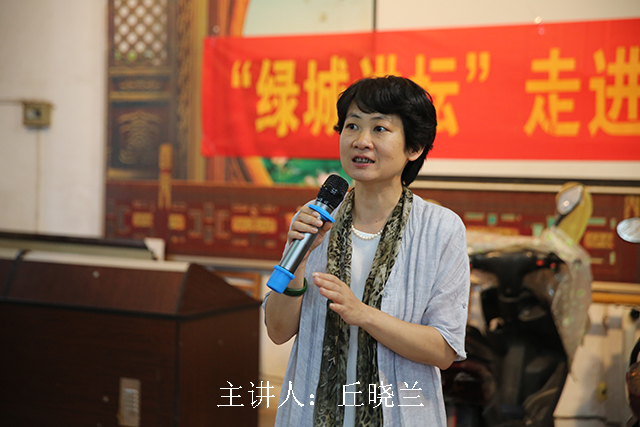 本次讲座的主讲人为美女作家丘晓兰。丘晓兰现任南宁文学院院长,《红豆》杂志社长、主编。广西作家协会理事,广西散文创作与研究学会副会长,南宁市作家协会副主席,广西签约作家,南宁市签约作家,南宁市“绿城玫瑰”女作家群负责人,南宁文学院客座教授。