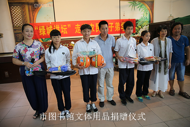 当天的讲座也是“绿城公益文学讲座进学校”的系列活动之一。南宁市图书馆还为海飞学校的孩子们送上了篮球、羽毛球、乒乓球、跳绳等文体用品,红豆杂志社也将最新出版的刊物及精美书签赠送给了在场师生,受到大家的喜爱。