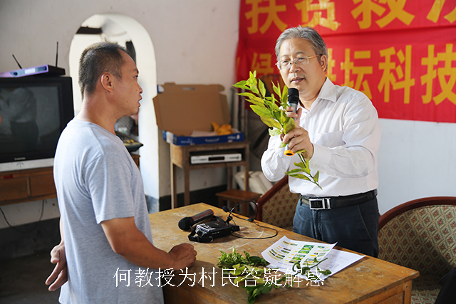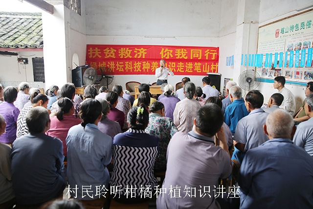 为了能使笔山村全村一户不落地与外界“联网”,看上电视,在活动的一开始,南宁市图书馆与南宁市少年儿童图书馆首先为笔山村贫困村民捐赠了6台电视机。据悉,这6台电视的采购经费来自于由这两家单位干部职工的爱心捐款。南宁孔庙则将一批科技书籍及光盘送到了笔山村村委书记李雨华的手中。此次,南宁市图书馆结合自身特点,也根据村民的切身需求,邀请了广西大学农学院副院长何新华教授就水稻和柑橘的科学种植与病虫害防治进行现场讲座。作为国家果树学科带头人的何教授还特地为村民们印制了科学种植与病虫害防治宣传册并免费向村民发放。当下,正值柑橘病虫害高发季节,不少村民更是专程拿着自己种养的果树枝丫前来 “现场看诊”,何教授也就病虫害起因、药物喷洒的时机和方式等方面的疑问进行了一一解答。在讲座结束之后,科普知识有奖问答也在正式拉开序幕,村民们通过回答问题获得精美礼品,收获颇丰。