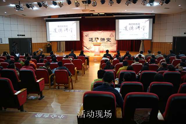 2016年11月10日,由江南区文明办主办,南宁树木园承办的江南区道德讲堂总堂南宁树木园专场活动在南宁市图书馆成功举办。来自自治区林业厅、江南区文明办、广西二建水电安装分公司、建设银行江南支行、江南污水处理厂、高峰林场、七坡林场等单位120余人参加了活动。