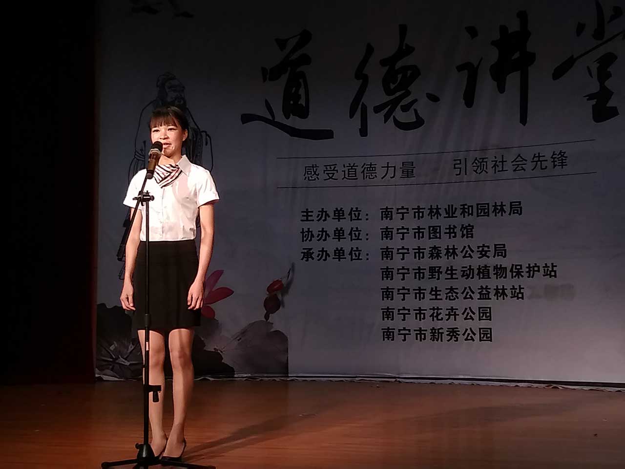 为迎接党的十九大胜利召开,扎实推进社会主义核心价值体系建设,普及科学文化知识,树立保护环境、勤俭节约意识,强化广大市民读者的道德素质,南宁市图书馆携手南宁市林业和园林局、森林公安、花卉公园、野保站、公益林站、新秀公园等单位,于7月5日开展了一场以“保护生态环境”为主题的“道德讲堂”活动。
