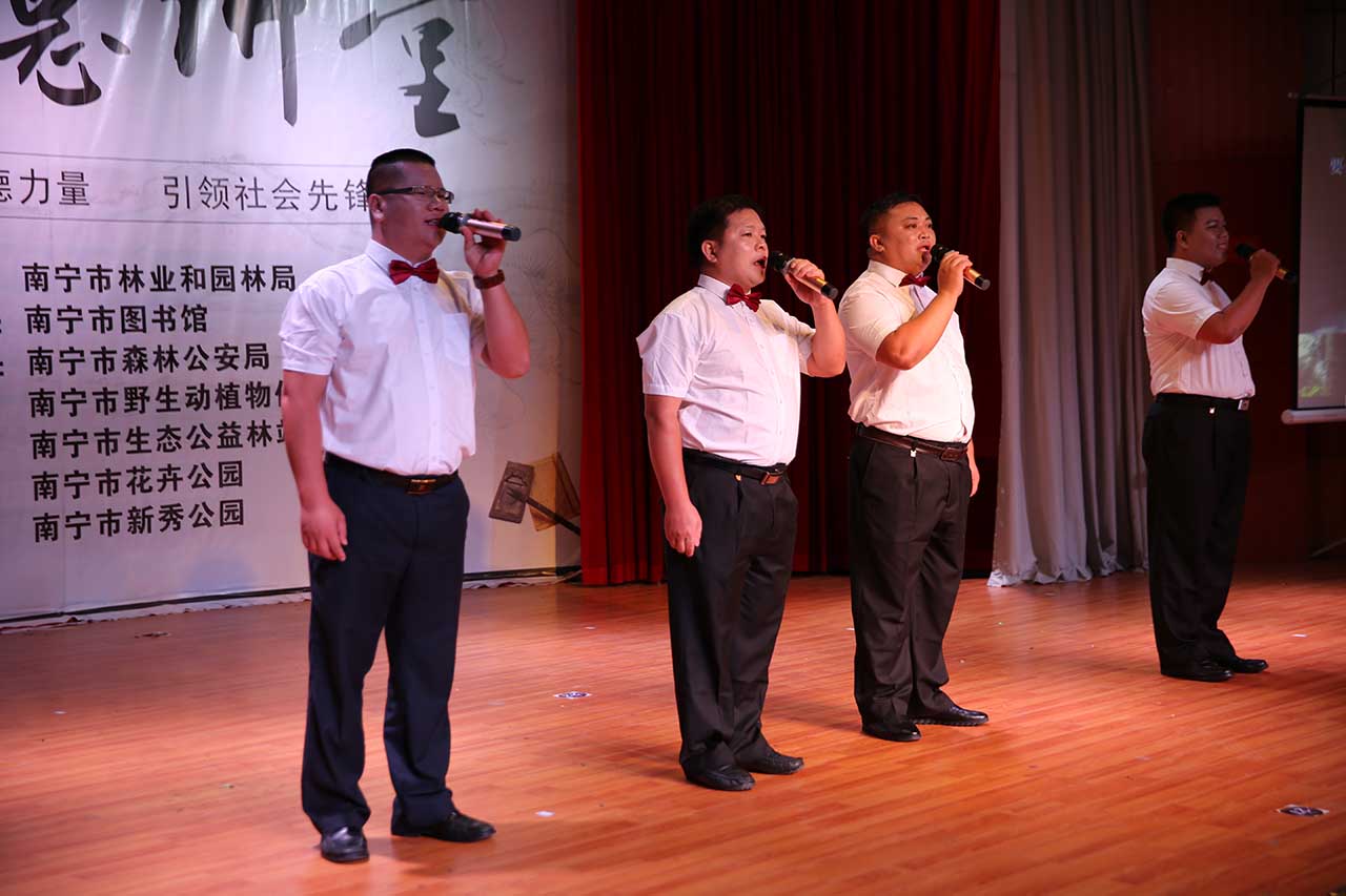 在活动中,自我反省作为第一个环节为大家展示了一台环保情景剧《筑梦绿城一路有你》,生动真切地反映了环保工作的重要性以及大众树立环保意识的急迫性,此环节的“三问”引导了大家进行深入的反省思改。在唱歌曲环节,小组唱《争取园博全面胜利》更是道出了绿城人的心声。活动设置了两个学典型环节,《绿色呵护者》和《森里护卫队》都深深地打动了现场的聆听者。