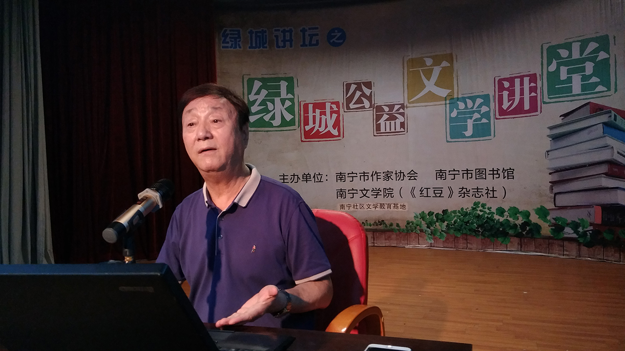 “读文学的书最重要的就是两个字——会意。读懂了,读通了,跟古人心神交汇了,这样,你就有收获了。”6月9日上午,“绿城讲坛”“读万卷书·行万里路——现代人人文素养之积淀”讲座在南宁市图书馆精彩开讲,此次讲座由南宁市作家协会、南宁市图书馆、南宁文学院(《红豆》杂志社)、南宁社区文学教育基地联合主办,邀请到广西著名学者彭匈为市民作客。彭匈睿智的哲思、幽默风趣的语言和独到的见解赢得了读者的热烈掌声。