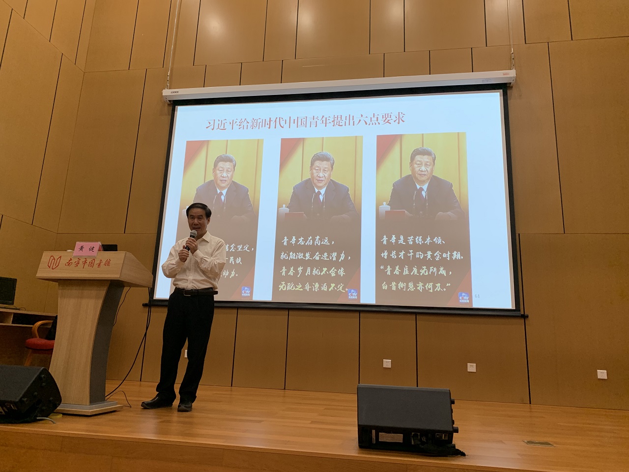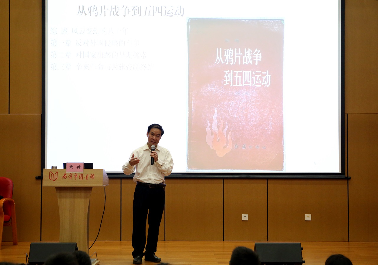 此次活动中,南宁市图书馆邀请到广西壮族自治区人民政府参事,广西壮族自治区党委决策咨询委员会专家黄健老师,为大家带来一场主题为“我与祖国一起成长”纪念“五四运动”100周年读书分享讲座。黄老师结合习近平总书记在纪念“五四运动”100周年大会上的讲话精神,从百年五四精神、书籍对少年时代的思想启蒙、领袖读书与实践形成的世界观对中国的影响与改变、对《习近平的七年知青岁月》感悟等方面,与大家分享了自身的所思所想,并推荐分享了《从鸦片战争到五四运动》《平凡的世界》等经典好书。