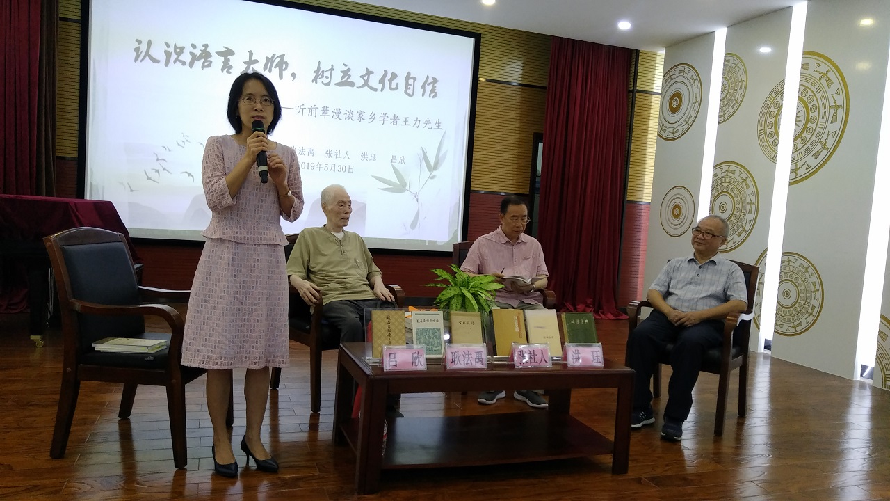 广西本土文化有着其深厚的韵味,其特殊性又让每一个广西人为之神魂颠倒,每一个广西人都是本土文化的创造者和传承者。一方水土养一方人,认识和了解本土文化,有助于弘扬家乡传统文化,培养独特的审美情操。商务印书馆学者吕欣在活动中与师生漫谈家乡,本土文化与本土语言;耿法禹、洪珏两位语文教育界老前辈,以及王力先生亲属与在场师生分享了王力的生平往事。大家通过讲座,感受到这位从广西走出去的语言大师勤学的家风、严谨的治学,以及博览群书和躬身实践的力量。