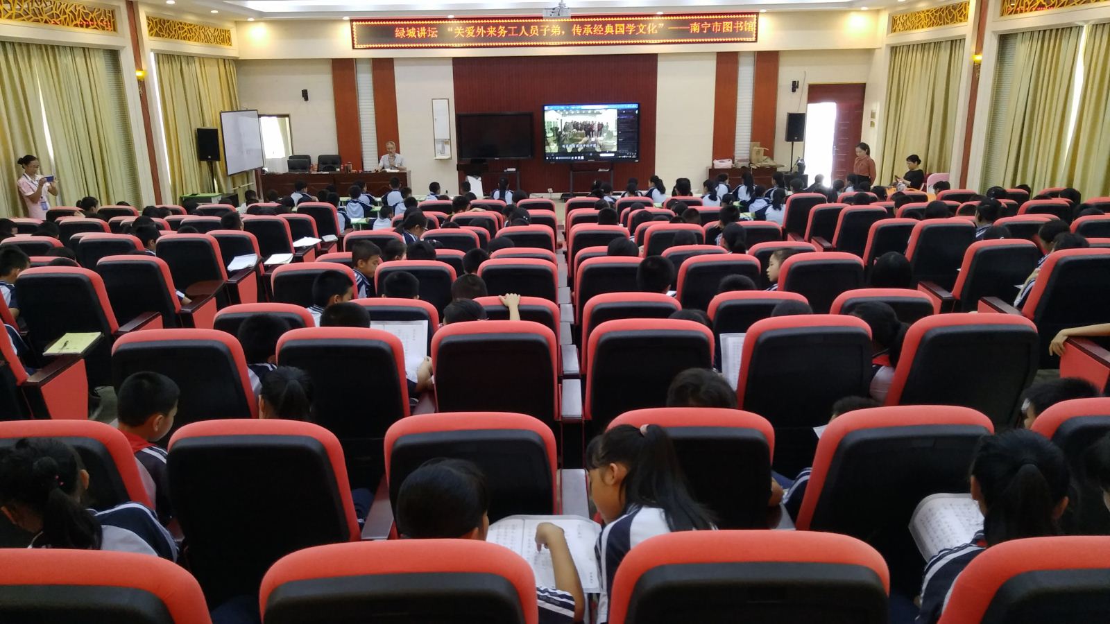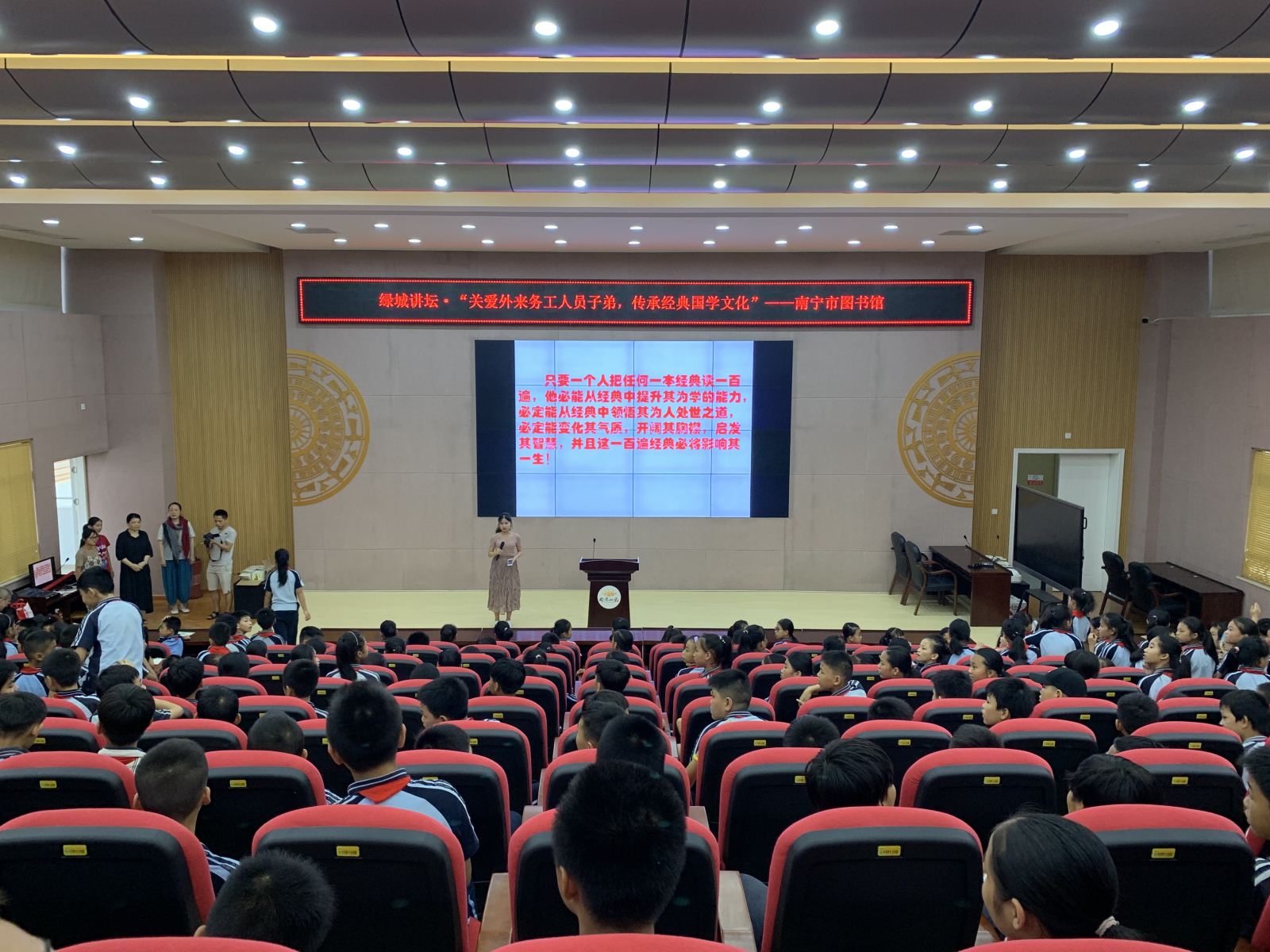 在每场活动开始前,南宁市图书馆分别为两所学校各赠送了一批连环画经典名著图书,深受广大师生欢迎。本次活动是“绿城讲坛”系列活动之一,注重培养外来务工人员子弟自主学习热情,努力引导他们在成长的道路上印下爱国印记,目的是让孩子们刻苦学习、自强自立,用优异成绩回报社会的同时也用知识改变自己的命运。