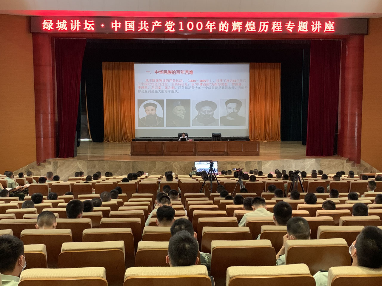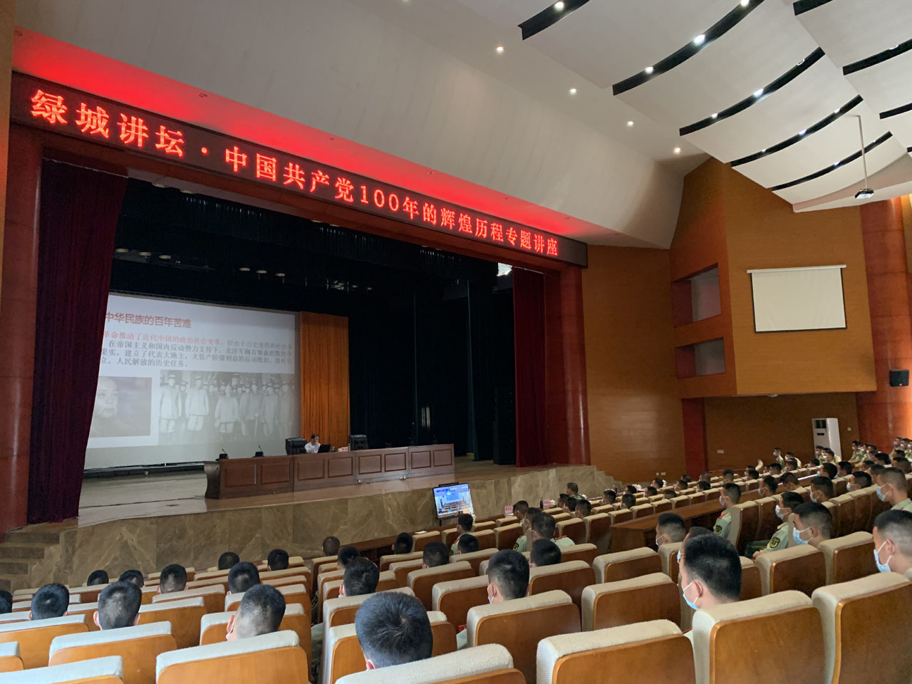 5月7日下午,南宁市图书馆阅读推广品牌“绿城讲坛”走进中国人民武装警察部队广西总队南宁支队,邀请广西壮族自治区党委决策咨询委员会专家、广西壮族自治区人民政府参事黄健老师,为武警官兵们举办了一场“绿城讲坛·中国共产党100年的辉煌历程”主题讲座。