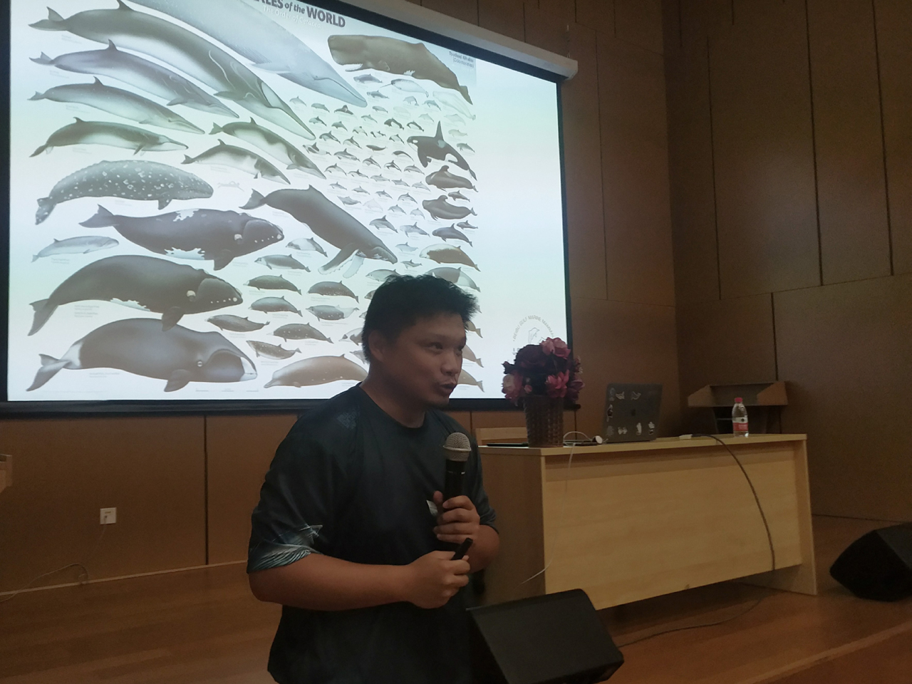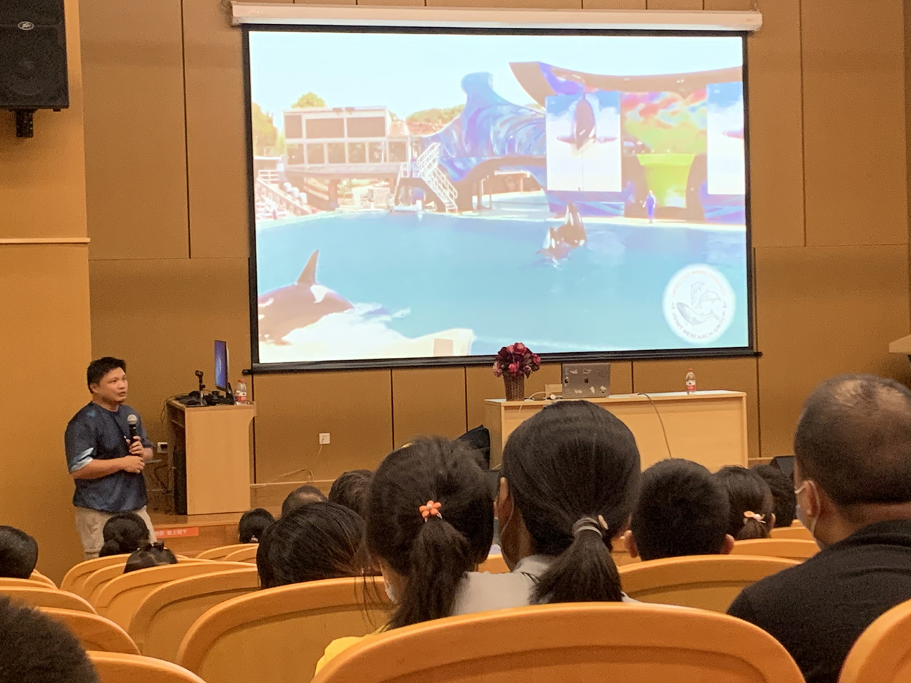 该讲座邀请广西科学院鲸类研究专家、博士陈默老师开讲,为大家科普鲸类知识。陈老师用内容丰富的鲸类知识讲解图和科普动画片,以及震撼力十足的海洋纪录片等灵活多样、生动幽默的讲解方式给读者朋友们带来一场印象深刻、富有教育意义的科普课堂,也让大家接触到了关于鲸类的知识,例如鲸鱼分为须鲸和齿鲸两种;海豚属于齿鲸,也属于鲸鱼一类……